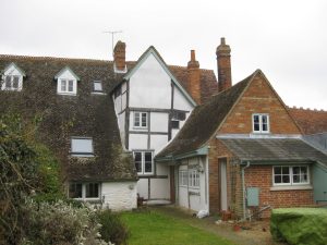 To the right is a former detached kitchen to the rear of a timber-framed house in South Oxfordshire – now connected to the building.